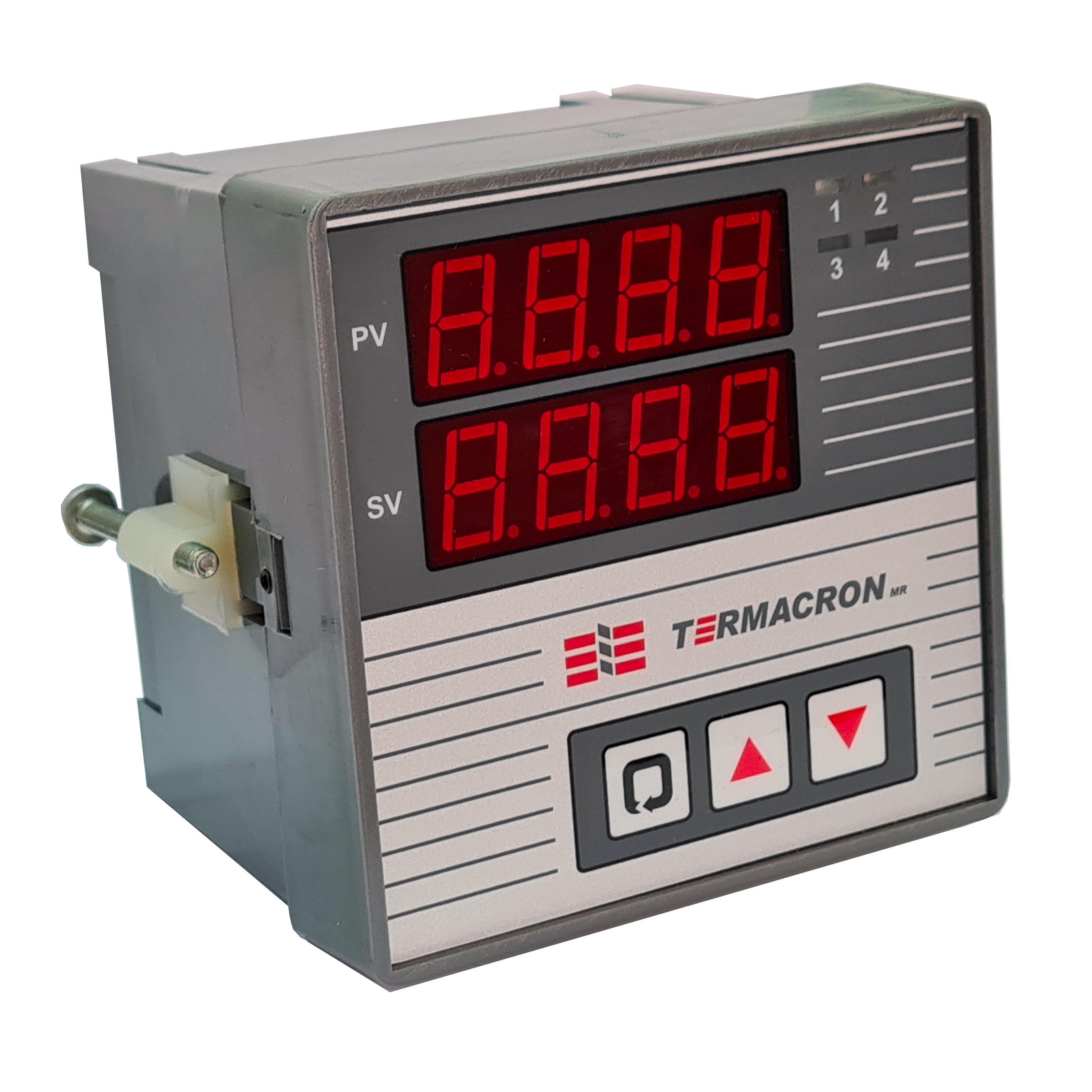 Controlador de temperatura microcontrolado configurable. 1/4 DIN. Entrada de termopar J ó K. Dos salidas de control (según modelo las salidas 1 y 2 varían entre relevador mecánico y salida por voltaje). Modos de control de la salida 1: ON-OFF, P, PI, PD, PID. Modos de control de la salida 2: ON-OFF, Alarma de banda (ALbA). Doble display 4 dígitos c/u.